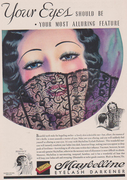 1913年的時候(不要懷疑時間,就是那么早),有個叫做瑪貝爾(Mabel)的姑娘單戀上一個帥小伙兒,為了讓睫毛好看好看一點(diǎn)兒,這姑娘就用凡士林加上煤灰來為自己的睫毛上了點(diǎn)兒妝。而這個土方子,還是她從某時尚雜志上看來的。