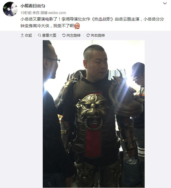近日,網(wǎng)上流傳著一組岳云鵬身穿鎧甲手持寬重兵器的拍攝花絮照,照片中他一套夸張的武俠造型,霸氣外漏,一改以往“賤萌”的形象,引起網(wǎng)友們的圍觀。 據(jù)知情人士透露,照片中的岳云鵬正在為李湘的導(dǎo)演處女作《熱血戰(zhàn)歌》試裝。 上月初,前湖南衛(wèi)視主持人李湘確認(rèn)以千萬年薪+股份的方式正式加盟奇虎360任副總裁兼首席內(nèi)容官,分管360影視以及相關(guān)內(nèi)容業(yè)務(wù)。李湘的加盟在網(wǎng)上引起了很多的質(zhì)疑,無論其明星身份還是從業(yè)資歷,都讓她與這個(gè)職位和薪資看起來并不匹配,即使她的上一份工作是在深圳衛(wèi)視擔(dān)任副總監(jiān)和首席藝術(shù)監(jiān)制。 業(yè)內(nèi)人士表示李湘目前急需一個(gè)機(jī)會(huì)來證明自己,所以入駐360影視后,也定將會(huì)有一系列大動(dòng)作。而這第一個(gè)大動(dòng)作就是她的導(dǎo)演處女作《熱血戰(zhàn)歌》,意圖為公司獻(xiàn)上她的第一桶金。 岳云鵬曾參演電影《煎餅俠》取得過不俗的成績(jī),在《歡樂喜劇人》的奪冠更是讓他紅透了“整邊天”。 而李湘這次選擇岳云鵬實(shí)在是一個(gè)明智之舉。 但岳云鵬也曾多次公開表示過他對(duì)現(xiàn)在單一風(fēng)格的憂慮,也多次表示,自己要尋找不同的表演風(fēng)格,避免有一天他的”賤萌”風(fēng)格讓觀眾審美疲勞時(shí)措手不及。 從已曝光的武俠造型以及岳云鵬嚴(yán)肅霸氣的表情上來看,這次的電影或許正好給了岳云鵬一個(gè)拓展自己演藝領(lǐng)域和嘗試不同表演風(fēng)格的絕好機(jī)會(huì)。這或許也是岳云鵬愿意接這部電影的原因。岳云鵬前幾天在微博中曬出自己的帥氣“靚照”,也坐實(shí)了他將向型男轉(zhuǎn)型的猜測(cè)。 另外,從網(wǎng)友曝光的圖片我們還可以看出,岳云鵬服飾酷似網(wǎng)游造型。在現(xiàn)在這個(gè)IP時(shí)代,稀缺資源也正是IP。而360集團(tuán)作為一家兼具游戲和影視娛樂資源的網(wǎng)絡(luò)公司,李湘執(zhí)導(dǎo)的這部電影很有可能是一部游戲改編電影。而這或許也是360集團(tuán)影視、游戲一體化的開始。 據(jù)悉,電影的目前正在籌備階段,和岳云鵬搭檔出演將會(huì)是誰,并無人透露,而小岳岳的黃金搭檔孫越會(huì)不會(huì)出演或者客串,也成了網(wǎng)友關(guān)注的焦點(diǎn)。 (責(zé)任編輯:武丹) |