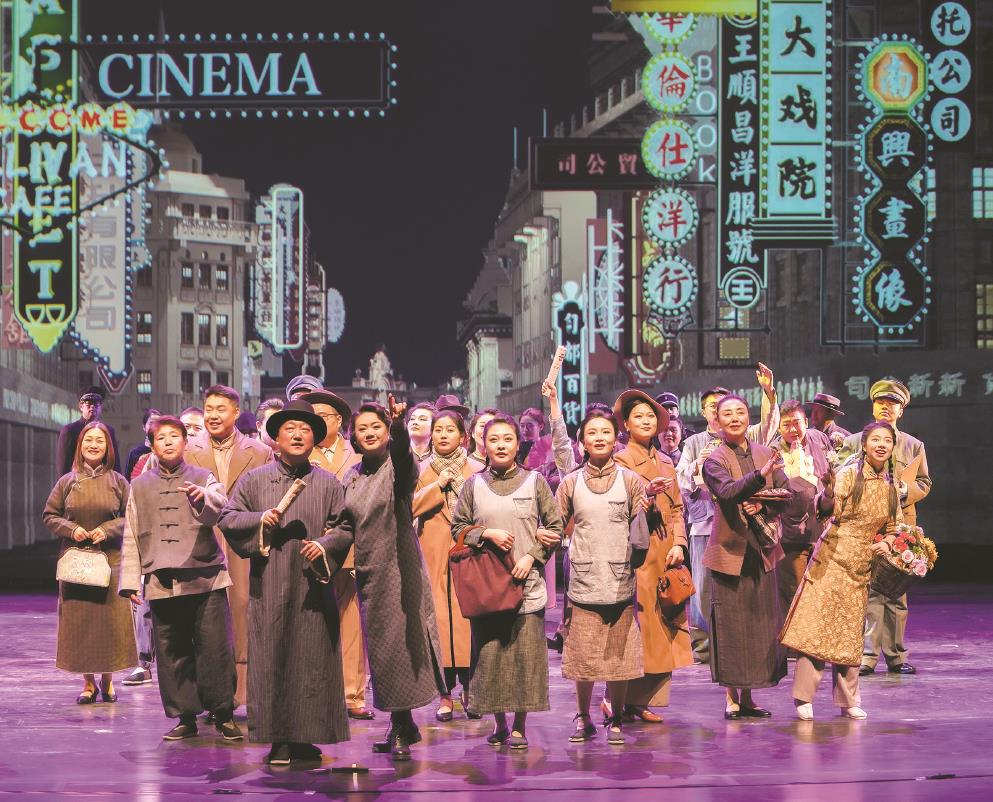 原創(chuàng)民族歌劇《義勇軍進(jìn)行曲》聚焦風(fēng)云時代下,以田漢、聶耳、夏衍、司徒慧敏、許幸之等為代表的左翼文藝工作者在上海創(chuàng)作出電影《風(fēng)云兒女》及其主題曲《義勇軍進(jìn)行曲》的故事。郭天來攝