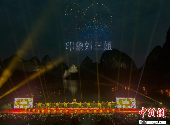 中新網(wǎng)桂林3月21日電(周利朔 蔣豐慧)3月20日晚,廣西桂林山水實(shí)景演出《印象·劉三姐》歡慶公演20周年,總導(dǎo)演王潮歌等藝術(shù)家與政商文旅界人士齊聚慶典現(xiàn)場(chǎng),與中外游客共襄盛舉。