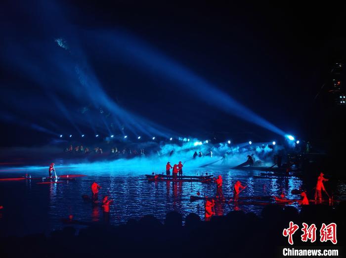 (資料圖)大型山水實(shí)景演出《印象·劉三姐》現(xiàn)場(chǎng)。 鹿錦 攝