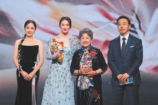 最受大學(xué)生歡迎年度女演員榮譽(yù)由《草木人間》的主演蔣勤勤(左二)獲得。