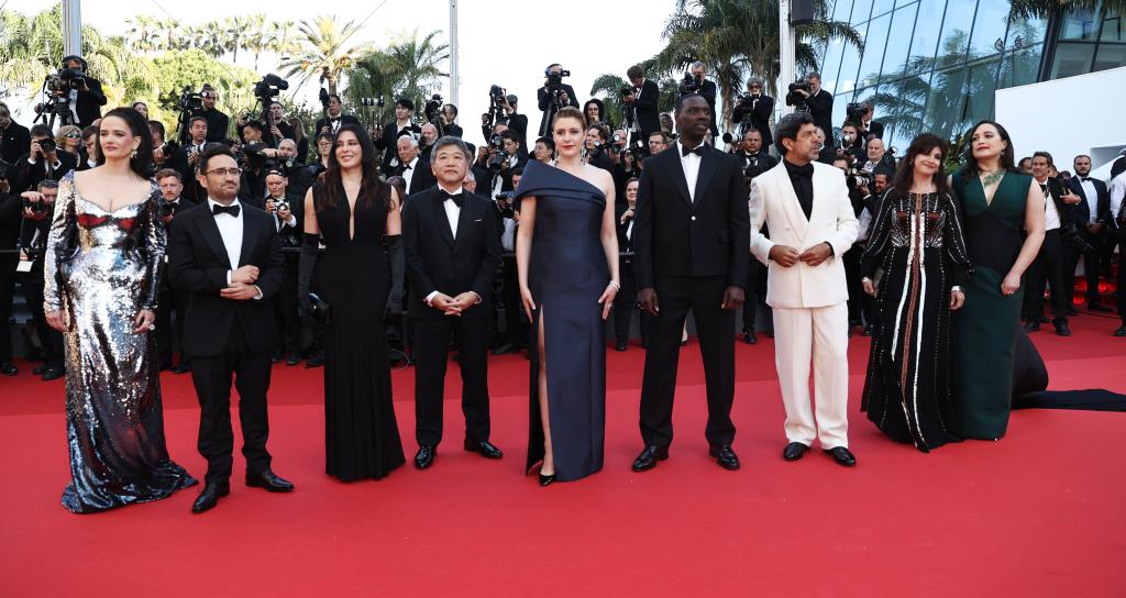 5月25日,在法國南部城市戛納舉行的第77屆戛納電影節(jié)上,主競賽單元評委抵達(dá)閉幕式紅毯。新華社記者 高靜 攝