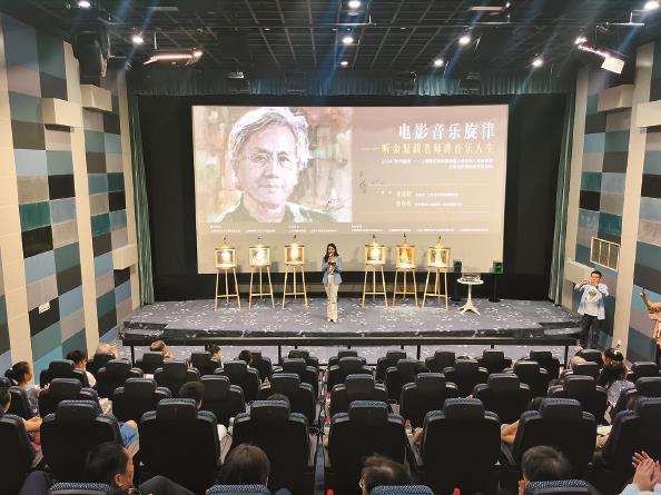 走進電影博物館的藝術影廳,可以看到大銀幕前放置了六幅油畫肖像,分別是賀綠汀、黃準、呂其明、陳傳熙、湯沐海等與電影音樂創(chuàng)作密不可分的作曲家——這些肖像正出自賀壽昌之手。今年82歲的金復載自25歲起從上海音樂學院畢業(yè)之后,就進入動畫片和電影配樂領域。而他退休后,還一腳踏入了如今十分興盛的音樂劇,成為上海音樂學院音樂劇系的首任系主任。因此,他的音樂生涯,始終是“時代旋律”。他見證了廣受大眾喜愛的電影、動畫、音樂劇音樂的發(fā)展歷程?,F(xiàn)場播放了央視為他拍攝的紀錄片,畫面上呈現(xiàn)了他的代表作——電影《紅河谷》、動畫片《哪吒鬧?!贰度齻€和尚》《雪孩子》,還有電視劇《濟公》里的“鞋兒破、帽兒破……”讓現(xiàn)場不同年齡的觀眾都回憶起各自的美好童年……