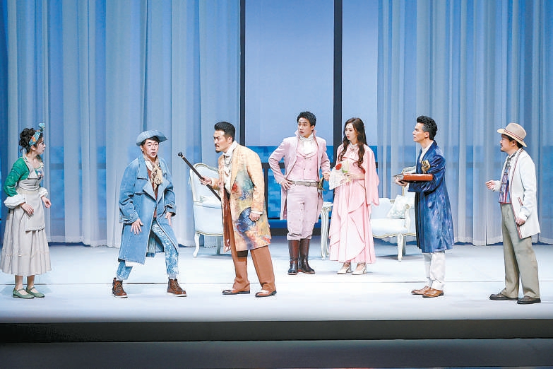“在保留原作時(shí)代風(fēng)貌的基礎(chǔ)上,我們期待能進(jìn)行現(xiàn)代視角的轉(zhuǎn)譯,讓這部經(jīng)典作品煥發(fā)出更輕快時(shí)尚的舞臺(tái)表達(dá)?!眹?guó)家大劇院副院長(zhǎng)張堯說。這一版《一仆二主》集結(jié)了中國(guó)國(guó)家話劇院導(dǎo)演王劍男、舞美設(shè)計(jì)張華翔等主創(chuàng)藝術(shù)家,由董汶亮、楊淇、郭爍杰、孫立石等國(guó)家大劇院戲劇演員隊(duì)演員出演。他們首先呈現(xiàn)了《一仆二主》原作靈巧詼諧的精髓,將角色間環(huán)環(huán)相扣的“信息差”層層剝開。