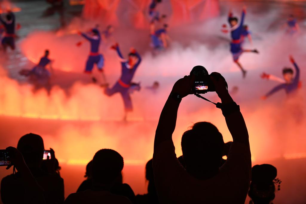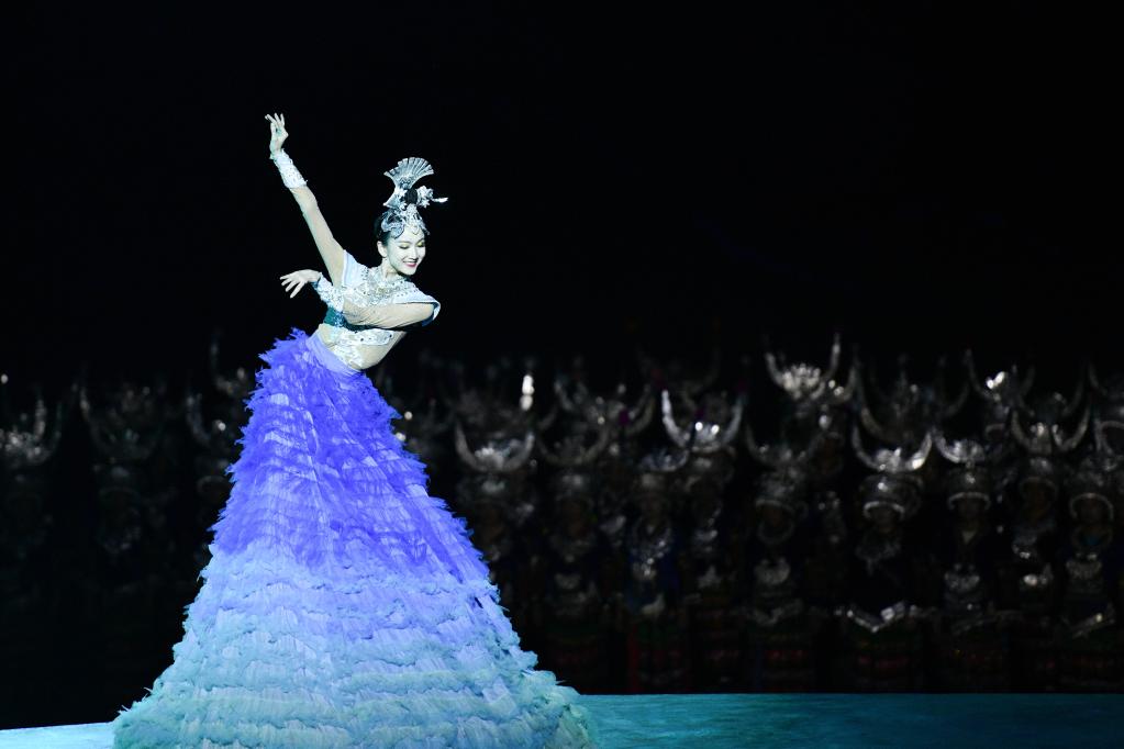 國慶將至,大型實景苗族歌舞詩劇《仰歐桑》在貴州省黔東南苗族侗族自治州雷山縣大塘鎮(zhèn)仰歐桑劇場精彩上演。歌舞劇通過全息投影、燈光、舞美、大型裝置等實景布景,將苗族節(jié)日、習俗、服飾等民族元素搬上舞臺,為觀眾呈上一臺文化盛宴。