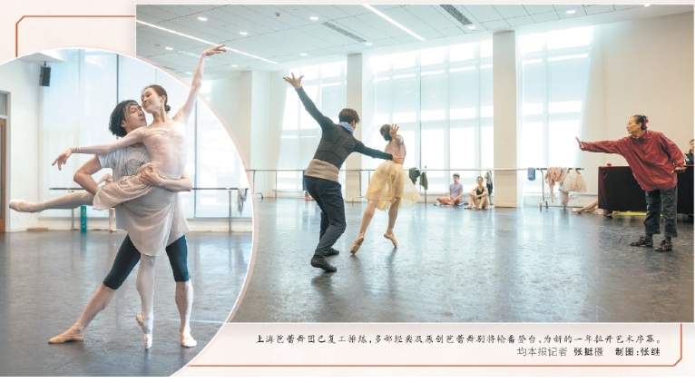 上海芭蕾舞團(tuán)已復(fù)工排練,多部經(jīng)典及原創(chuàng)芭蕾舞劇將輪番登臺,為新的一年拉開藝術(shù)序幕。均本報(bào)記者 張挺 攝 制圖:張繼