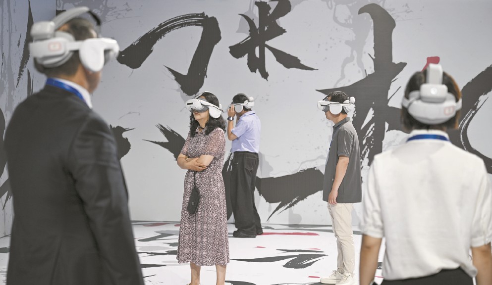 電影節(jié)的電影市場活動上,嘉賓觀看中國電影科技企業(yè)的虛擬影片。 新華社發(fā)