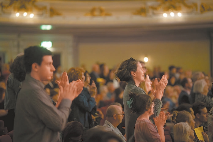 英國愛丁堡亞瑟音樂廳里,觀眾為中國國家大劇院管弦樂團起立鼓掌。牛小北攝