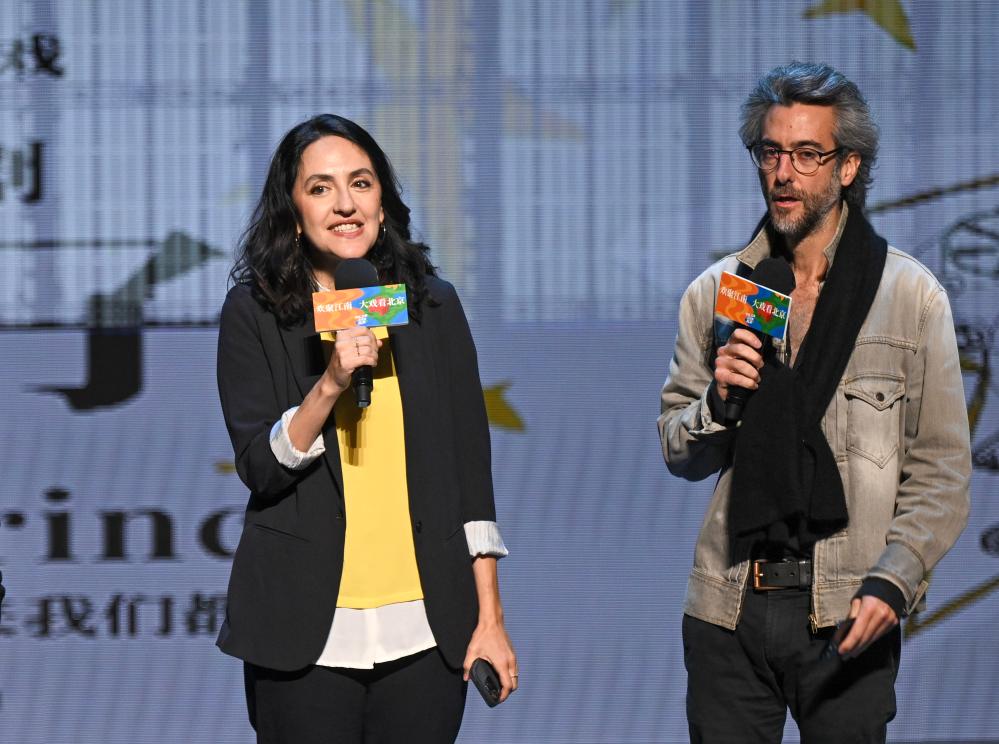 10月12日,在位于北京的中央歌劇院劇場(chǎng),音樂(lè)戲劇《小王子》導(dǎo)演讓·貝洛里尼(右)、總制作人安娜出席發(fā)布會(huì)。新華社記者 金良快 攝