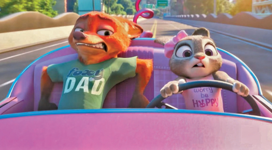 《瘋狂動(dòng)物城》的成功符合經(jīng)典動(dòng)畫片的黃金法則:老少咸宜,以覆蓋面超廣的娛樂性找到觀影人群的最大公約數(shù)。令人大開眼界、應(yīng)接不暇的城市空間架構(gòu),妙趣橫生又遵循科學(xué)依據(jù)的動(dòng)物角色,節(jié)奏緊湊且通俗易懂的故事情節(jié)……《瘋狂動(dòng)物城》讓低齡觀眾看到了熱鬧和逗趣,又讓成人觀眾在此基礎(chǔ)上體會(huì)到了影片對現(xiàn)實(shí)的巧妙投射。比如,車管局的樹懶閃電,以0.1倍速的行為模式既實(shí)現(xiàn)了純粹的肢體喜劇,又讓現(xiàn)實(shí)中經(jīng)歷過美國車管局低效率的人感同身受、忍俊不禁。