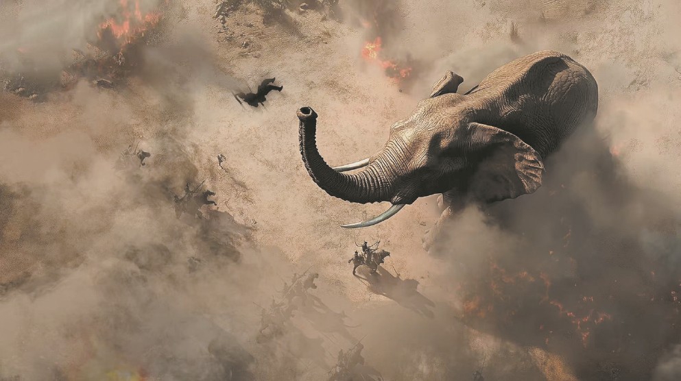 百米青銅巨門徐徐開啟,祭祀臺上女子隨樂獨(dú)舞,突然黃沙漫天,戰(zhàn)象狂奔而來,未等塵埃落定,視線閃回“博物館”,金戈鐵馬化作一尊尊精美文物浮現(xiàn)眼前……