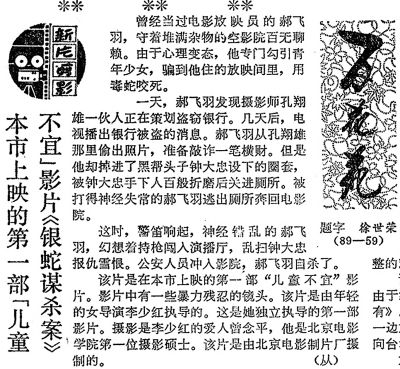 1989年5月24日,李少紅的名字第一次出現(xiàn)在《北京日報》的版面上。當(dāng)天的《北京日報》二版中心區(qū)偏左的位置,有一個“豆腐塊”,標題有些聳動——本市上映的第一部“兒童不宜”影片《銀蛇謀殺案》。李少紅身上的另一個“第一”,是她1995年執(zhí)導(dǎo)的電影《紅粉》,開啟了國產(chǎn)片分賬模式的先河。而隨后拍《雷雨》,更是讓她成為國內(nèi)最早轉(zhuǎn)型拍電視劇的電影導(dǎo)演之一。