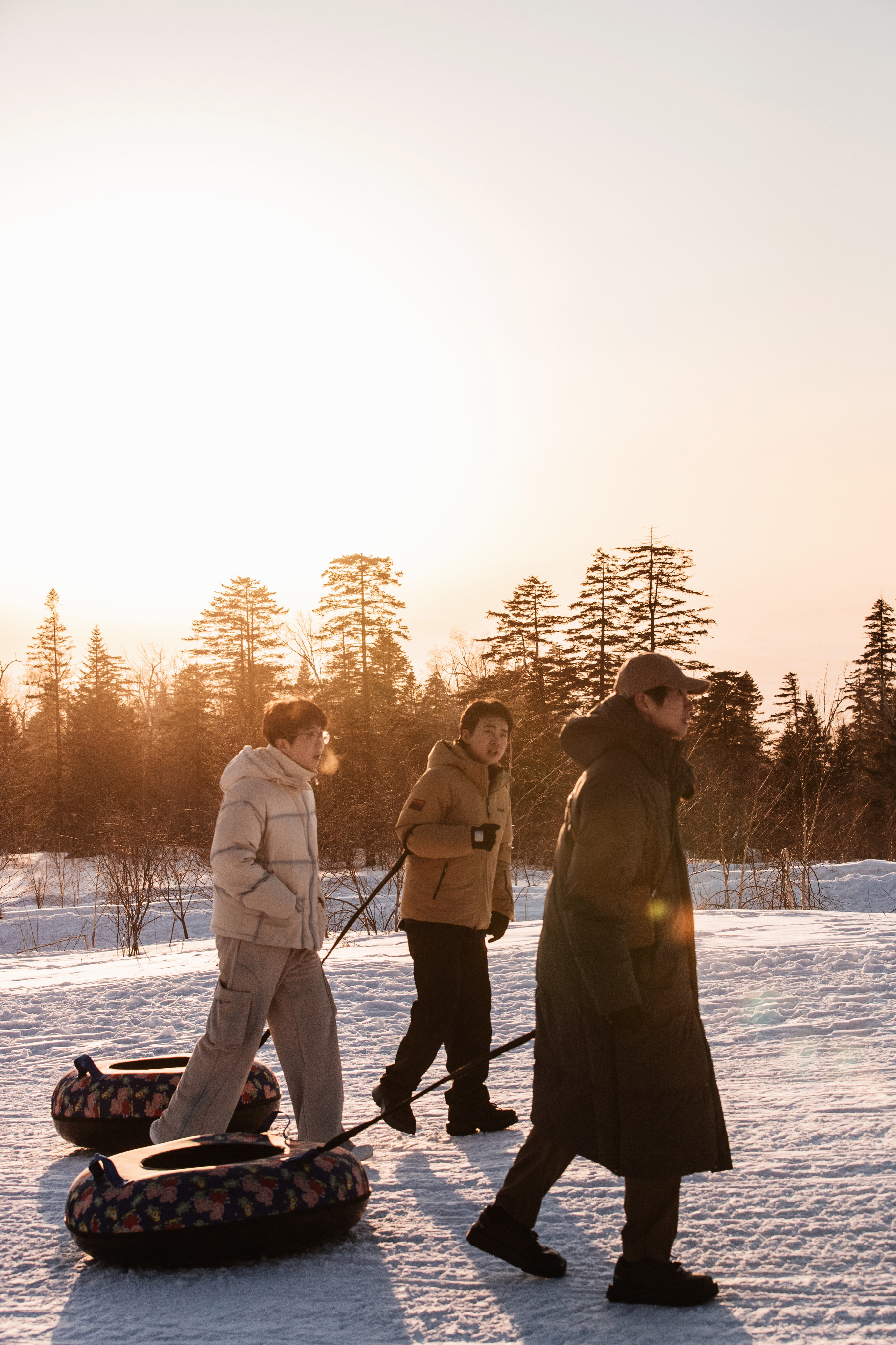 首期節(jié)目中延邊朝鮮族自治州雪嶺景區(qū)長白山的美景、美食也不容錯過。在愛芒導(dǎo)演的精心安排下,三人組賞雪松云海,看長河落日,乘坐雪地摩托、搭乘馬拉爬犁登頂雪嶺,與雪地精靈馴鹿親密接觸,更是于傍晚大快朵頤了延吉當(dāng)?shù)孛朗场T谝惶熵S富的行程中不但順利完成了vlog拍攝內(nèi)容,并與愛芒導(dǎo)演成功溝通了想要的vlog風(fēng)格,更是在對于風(fēng)景和新奇互動的切身體驗中揭開了關(guān)于世界的又一面。一天行程結(jié)束之后,眾人相聚圍坐意猶未盡地復(fù)盤了整日安排,并及時給到了愛芒關(guān)于各自不同的意見反饋,讓愛芒在行程的安排上增加了有關(guān)嘉賓們體力和天氣的考量。愛芒導(dǎo)演也在綜合多個因素后,將滑雪和雪地摩托森林穿越的行程改道為長白山北坡。