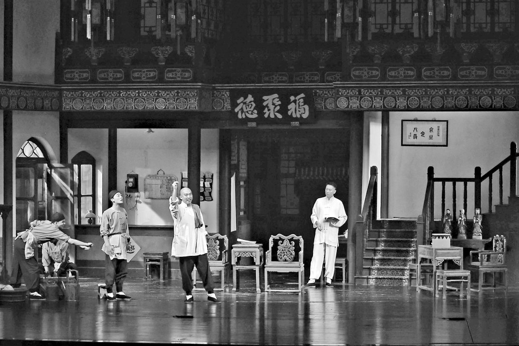 作為一部反映一百多年前生活的作品,導(dǎo)演閆銳認(rèn)為,要“找回歷史的記憶和時(shí)代的道”,在他看來,“這版中的人物除了鮮活之外,尊嚴(yán)也是著力要展現(xiàn)的,我們也是在這個(gè)主旨下深耕人物,把握每一個(gè)細(xì)節(jié),力求在經(jīng)典的基礎(chǔ)上展現(xiàn)出年輕人的狀態(tài)。這部作品要向觀眾呈現(xiàn)當(dāng)時(shí)的生活畫卷,演員們不僅要還原當(dāng)時(shí)的生活,更要用當(dāng)時(shí)的語(yǔ)言方式和韻律來表達(dá)?!贝溯喸傺?,導(dǎo)演顧威提出“要不丟人、不丟范兒、不丟對(duì)傳統(tǒng)的尊重”。于是,新一輪的塑造仍要在人物上下功夫,同時(shí)對(duì)于作品的理解也要有新體會(huì)?!叭鐒≈械慕Y(jié)尾‘天下沒有不散的筵席’這樣具有智慧和哲思的臺(tái)詞,為什么由修鼎新這個(gè)角色說出,帶有作者怎樣的思考,如何突出其中的哲思和況味,在這一輪的排演中,我們都進(jìn)行了重新的解讀和提升?!?/p>