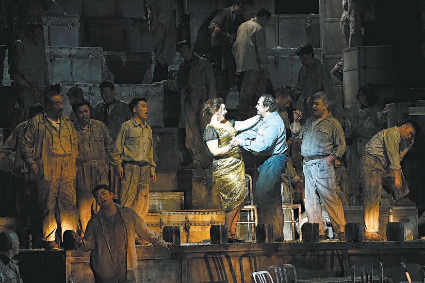 頗有年代感的大皮箱擺了一地,臺(tái)球桌橫陳潦草,酒杯滿天亂飛,酒館老板、礦工、盜匪粉墨登場(chǎng),一派粗糲的莽荒氣質(zhì)撲面而來(lái),如同一部酣暢淋漓的西部大片。上周末,國(guó)家大劇院制作的普契尼歌劇《西部女郎》正在緊張彩排,7月23日至27日,著名指揮家卡羅·利茲將執(zhí)棒國(guó)家大劇院管弦樂(lè)團(tuán),攜手中、美、意三國(guó)藝術(shù)家組成的創(chuàng)演陣容,把這部描寫(xiě)加利福尼亞淘金熱的歌劇帶上2024國(guó)家大劇院歌劇節(jié)的舞臺(tái)。