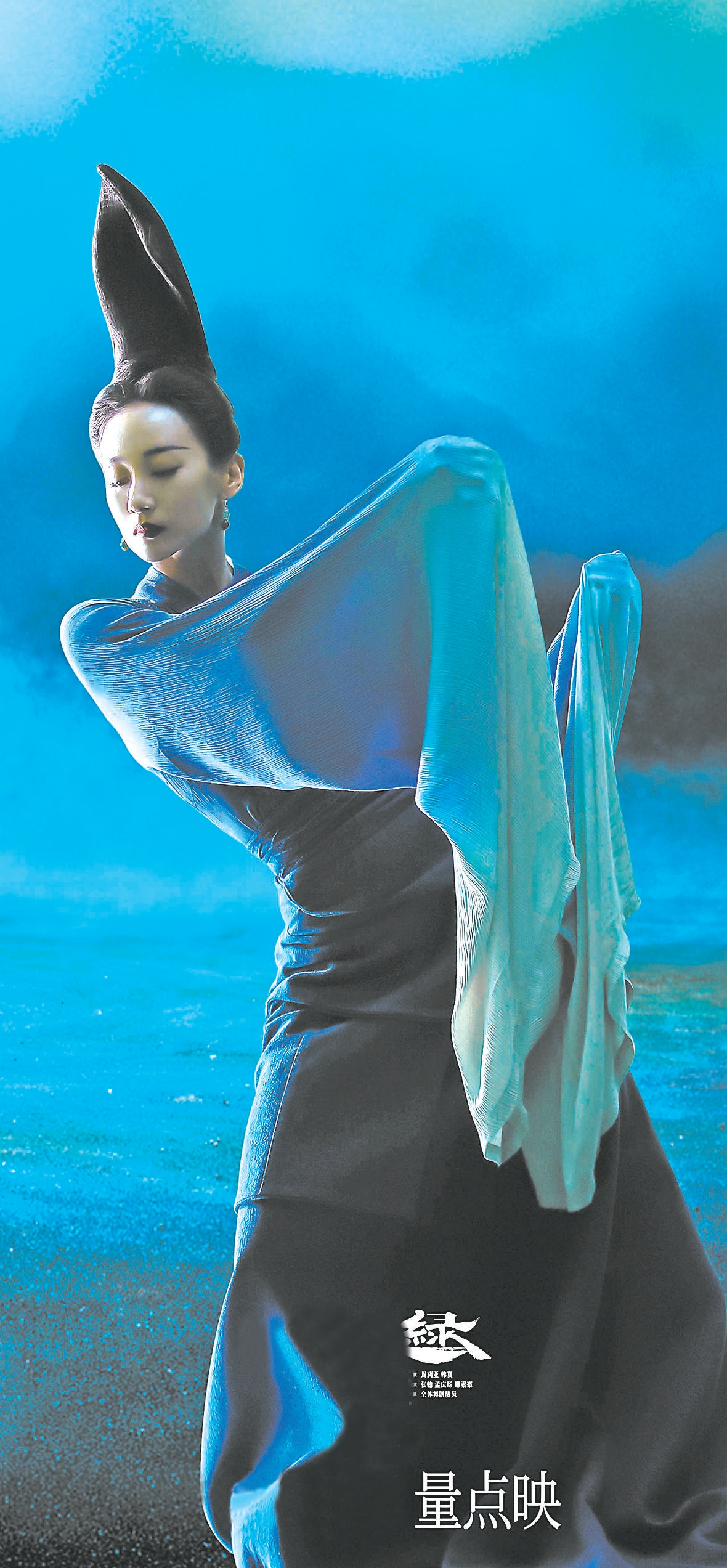 比較遺憾的是,電影沒(méi)有還原舞劇中展卷人、青綠、希孟三人同場(chǎng)望月的畫(huà)面,改為用鏡頭進(jìn)行分割,在一定程度上削減了兩個(gè)時(shí)空經(jīng)由青綠形成共振的沖擊力。展卷人也由于鏡頭的組接邏輯,無(wú)法像舞劇那樣出現(xiàn)在每一個(gè)場(chǎng)景中,這就讓他與希孟之間的聯(lián)結(jié)若有似無(wú),一部分兩人共舞的畫(huà)面也顯得動(dòng)力不足。