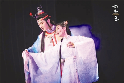 作為經(jīng)典IP改編的原創(chuàng)音樂劇,《寶玉》從創(chuàng)作過程到成型演出,持續(xù)引起外界廣泛關(guān)注和熱烈反響。《寶玉》正如其名,以“寶玉”視角向眾人鋪開大觀園的離合悲歡。在有緣人對寶玉命運的循循引領(lǐng)下,逐一展露寶玉的覺醒、黛玉的哀婉風(fēng)骨、寶釵的隱忍綿長、王熙鳳的潑辣悲愴等人物特質(zhì)。全劇以歌入情,以舞動人,為觀眾呈現(xiàn)了一個紅樓獨特的音樂劇表達(dá)。對于耳熟能詳?shù)慕?jīng)典片段“寶黛共讀西廂”“黛玉葬花”“金玉良緣大婚”等,則通過“片段式敘事”與“閃回蒙太奇”手法串聯(lián)而起。
