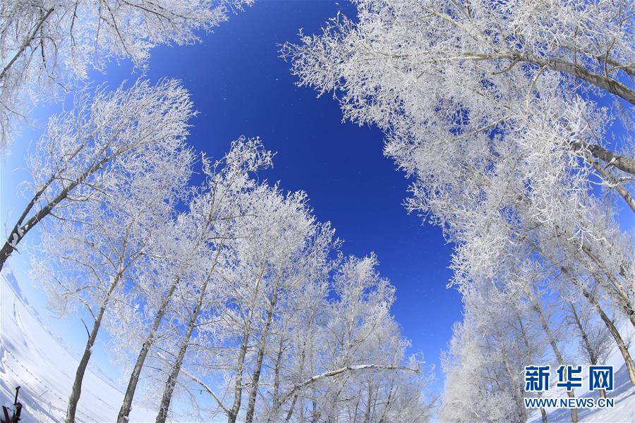 1月3日在新疆阿勒泰地區(qū)富蘊縣吐爾洪鄉(xiāng)拍攝的霧凇美景。藍天映襯下的冰雪世界顯得一片肅穆。 新華社發(fā)(丁寧 攝)