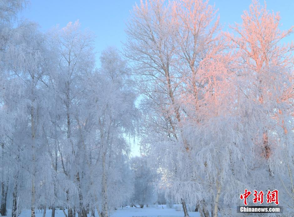 連日來,新疆阿勒泰地區(qū)遭遇十年來罕見強降雪,雪后初霽,氣溫漸降。1月4日,受超低溫天氣的影響,阿勒泰哈巴河白樺林出現(xiàn)大面積霜掛美景,晶瑩剔透,潔白無瑕,銀裝素裹,成為一道道美麗的風(fēng)景線。 謝師民 攝