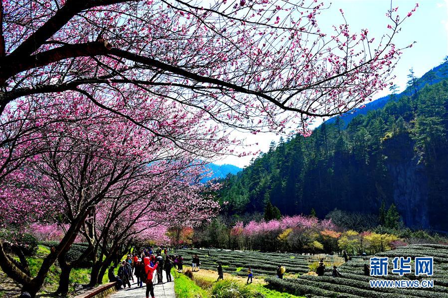 2月29日,游客在武陵農(nóng)場(chǎng)賞花。初春的臺(tái)灣,氣溫回升,位于海拔1700多米的臺(tái)中武陵農(nóng)場(chǎng),漫山遍野的櫻花競(jìng)相開(kāi)放,美不勝收,吸引了四面八方的游客前來(lái)觀賞。 新華社記者張國(guó)俊 攝