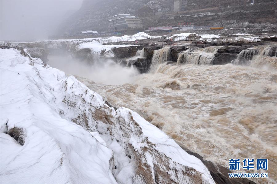 3月9日,一名游客在山西吉縣拍攝飛雪中的黃河壺口瀑布。當日,受倒春寒天氣影響,位于山西吉縣和陜西宜川縣交界的黃河壺口瀑布迎來雨雪天氣,奔流的壺口瀑布在白雪的映襯下更顯壯美。新華社發(fā)(呂桂明 攝)