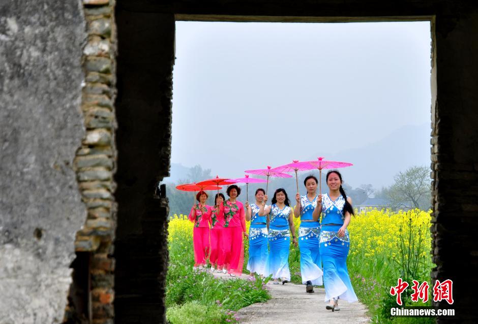 3月20日,江西省德興市海口鎮(zhèn)杜村婦女在田間花?!白咝恪薄.斎?,江西德興市海口鎮(zhèn)杜村一批家庭婦女以千畝油菜花海為舞臺,展示自己的才藝形象,希望宣傳家鄉(xiāng)的自然生態(tài)與人文歷史,擴大旅游知名度和影響力。德興市海口鎮(zhèn)杜村交通便利,自然風光優(yōu)美,村內有歷史古跡和名木古樹。 胡敦煌 攝