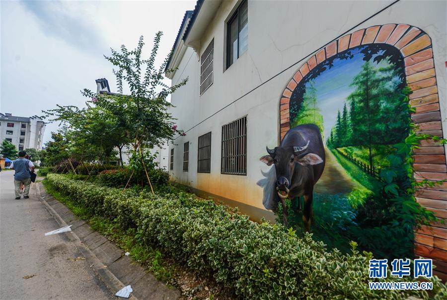 浙江省長興縣北湯村的村舍墻壁上繪有3D畫(7月13日攝)。 7月初,由上海的藝術(shù)家團(tuán)隊繪制的多幅3D藝術(shù)畫亮相浙江省長興縣林城鎮(zhèn)北湯村的村舍墻上。林城鎮(zhèn)北湯村是浙江省長興縣新農(nóng)村建設(shè)示范點,此次繪制3D藝術(shù)畫墻,是該村提升農(nóng)村品味、打造“詩畫北湯”的新舉措。 新華社記者徐昱攝
