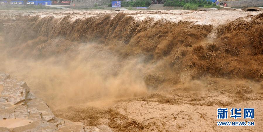 近日,受上游地區(qū)強降雨天氣影響,位于山西吉縣和陜西宜川縣交界的黃河壺口瀑布水量大漲。目前,壺口景區(qū)已啟動應急預警,工作人員加強上游水情監(jiān)測并加大安全巡查力度,確保游客安全。新華社發(fā)(呂桂明 攝)