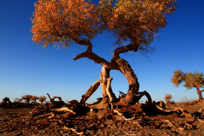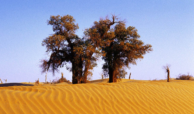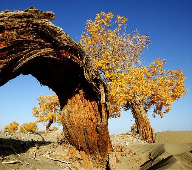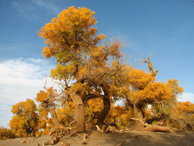 巴州旅游局局長(zhǎng)馬彥成說, 由于胡揚(yáng)具有驚人的抗干旱、御風(fēng)沙、耐鹽堿的能力,能頑強(qiáng)地生存繁衍于沙漠之中,因而也被人們贊譽(yù)為“沙漠英雄樹”。巴州輪臺(tái)縣羅布人村寨、羅布湖、及若羌縣的阿拉干沿途景色都非常迷人,希望游客到此賞游,將會(huì)領(lǐng)略到不一樣的美麗風(fēng)光。