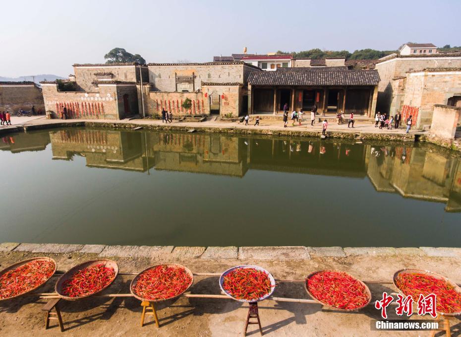 12月10日,航拍位于江西金溪縣有著600多年歷史的中國(guó)歷史文化名村、中國(guó)傳統(tǒng)村落竹橋古村,俯瞰全村,形似一柄巨扇。該村現(xiàn)保存有明代所建民居8幢,明代祠堂1幢,其余為清代建筑,青磚灰瓦,樸實(shí)素雅,為贛派建筑最典型的代表。村前溪水長(zhǎng)流,良田萬頃,村后茂林修竹,鳥鳴樹幽,身歷其境,如入畫中。傅建斌 攝