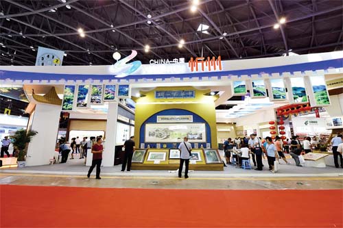 忻州展廳以“欣欣向榮·心靈之舟”為主題布展,展位在設(shè)計(jì)上將“五臺山”藍(lán)天白云與佛教建筑形成的獨(dú)特景色融為一體,從立體空間結(jié)構(gòu)、色彩氛圍渲染和建筑元素搭配等幾個(gè)方面著手,設(shè)計(jì)出獨(dú)具忻州特色的“佛教圣境”展廳。(本報(bào)記者 馮曉磊 攝影報(bào)道)