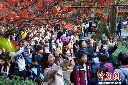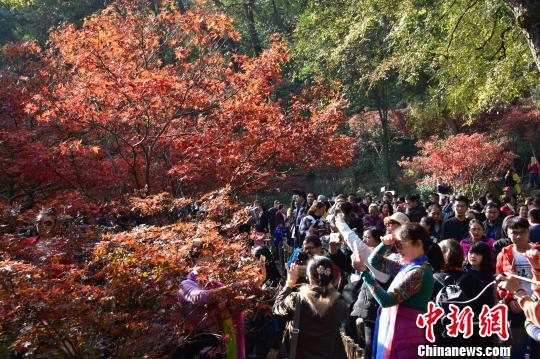 楓樹(shù)林下聚集大批游客拍照留念。 盧文偉 攝