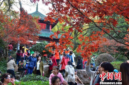 11月26日,長(zhǎng)沙岳麓山上迎來(lái)眾多游客扎堆賞楓。岳麓山是全國(guó)四大賞楓勝地之一,每年的11月下旬至12月為最佳觀賞期,登山可看到“漫山紅遍,層林盡染”的美景。