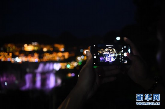 近日,湘西土家族苗族自治州永順縣芙蓉鎮(zhèn)景區(qū)在做好疫情防控的情況下恢復(fù)開放。夜幕降臨,景區(qū)內(nèi)的瀑布、吊腳樓與燈光交相輝映,美不勝收,吸引許多游客前來休閑、參觀。