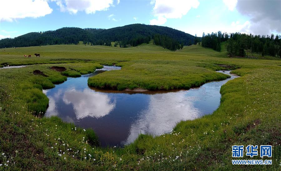 夏日時(shí)節(jié),新疆哈巴河縣薩爾布拉克鎮(zhèn)高山牧場(chǎng)水草豐茂,風(fēng)景如畫(huà)。
