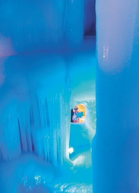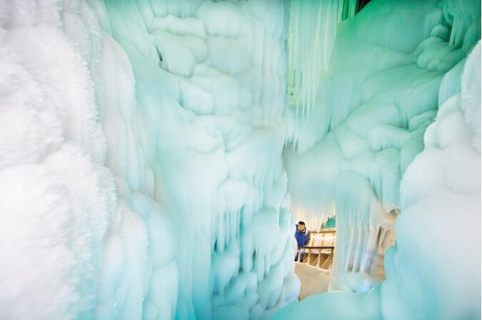 洞外鮮花盛開(kāi),綠樹(shù)成蔭,洞內(nèi)卻寒氣逼人。目前,洞內(nèi)已開(kāi)發(fā)部分分為三層,有冰簾、冰鐘、冰花、冰人、冰菩薩等,堪稱一個(gè)冰的世界,在五彩燈光的照射下,呈現(xiàn)出夢(mèng)幻般的景象,被稱為世界奇觀。