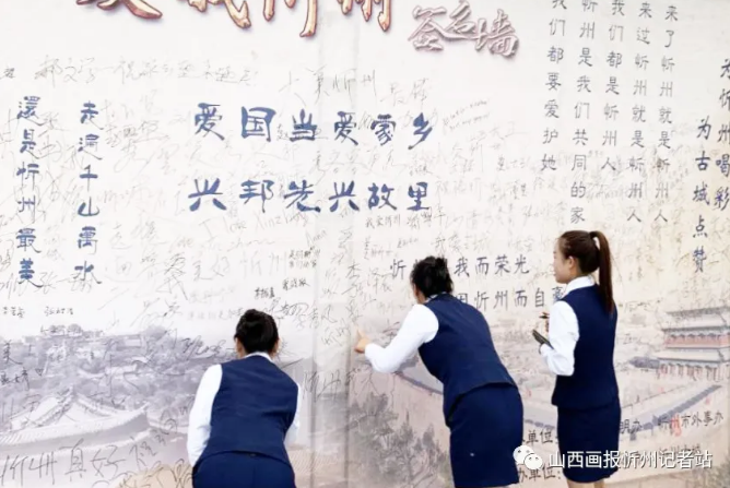 “走遍千山萬水,還是忻州最美”“來了忻州就是忻州人,來過忻州就是忻州人”“愛國當(dāng)愛家鄉(xiāng) 興邦先興故里”……墻上的一句句充滿情感、生動(dòng)質(zhì)樸的語言,寫滿了對祖國、對家鄉(xiāng)的濃濃熱愛,引起了過往游客路人的深深共鳴。游人們有的在這些文字旁簽名,有的合影留念,有的文思泉涌寫下一條條深情寄語,盡情表達(dá)著對忻州發(fā)展的美好祝福和共建全國文明城市的堅(jiān)定信心。