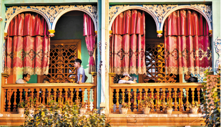 金秋時節(jié),新疆著名旅游景點——喀什古城景區(qū)游客日漸增多。自9月初新疆跨省市旅游全面開放以來,喀什古城景區(qū)旅游復蘇呈現(xiàn)加速趨勢。 古城景區(qū)相繼推出民宿家訪、手工藝品制作、品嘗特色美食等一系列項目,吸引越來越多的游客前來感受古城的煙火氣。圖為9月22日,在喀什古城景區(qū),游客在“百年茶館”里品茶休息。 新華社記者 趙戈 攝
