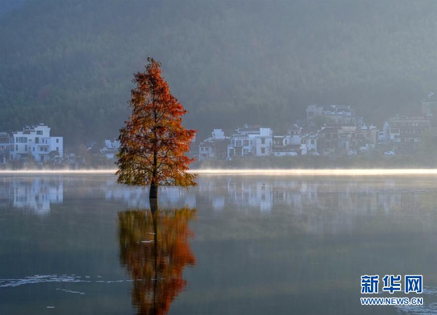 11月14日,安徽省黃山市黟縣奇墅湖晨霧縹緲,美如仙境。新華社發(fā)(水從澤攝)