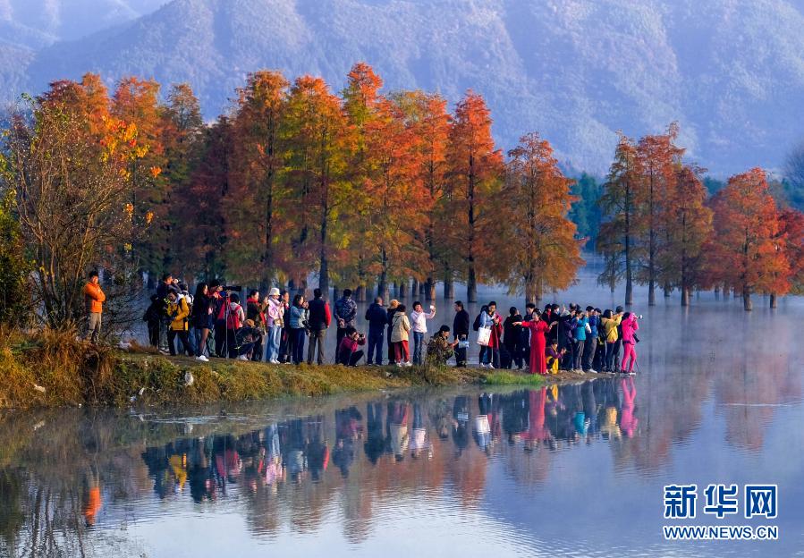 11月14日,安徽省黃山市黟縣奇墅湖晨霧縹緲,美如仙境,吸引眾多游客前來“打卡”。新華社發(fā)(水從澤攝)