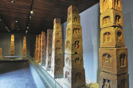 走進(jìn)長(zhǎng)治市博物館,仿佛進(jìn)入了歷史的長(zhǎng)廊,從創(chuàng)世之初、石之美者、塑土成陶、晶玉之瓷到吉金佳器,5個(gè)單元的館內(nèi)陳列展覽盡顯了長(zhǎng)治古老的文明。其中的“創(chuàng)世之初”主要反映早期人類(lèi)在長(zhǎng)治地區(qū)的生產(chǎn)生活痕跡。展品有義和、花坡兩處舊石器時(shí)代文化遺址和多處新石器時(shí)代文化遺址,表明了長(zhǎng)治是中華文明的早期發(fā)祥地之一。“石之美者”陳列的玉石雕琢而成的器物,主要出土于西周、春秋、戰(zhàn)國(guó)墓葬中,種類(lèi)豐富,精美非凡。多為祭祀、禮儀、裝飾、陳設(shè)用品,有極高的歷史價(jià)值和藝術(shù)價(jià)值?!八芡脸商铡闭龟惖奈奈镏饕翘掌鳎瑥男率鲿r(shí)代遺址中出土的體現(xiàn)“龍山文化”特色的陶器,到商代、漢代,直至隋唐之際的陶器,時(shí)間跨度非常之大。種類(lèi)涵蓋飲食器、貯藏器等生活實(shí)用器和專(zhuān)為殉葬而制作的各類(lèi)明器。尤其是用作明器的三彩陶器,凡與死者在世生活有關(guān)的如建筑、家具、牲畜和人物等無(wú)不具備,包羅萬(wàn)象,真實(shí)再現(xiàn)了當(dāng)時(shí)各個(gè)階層人士的不同生活面貌?!熬в裰伞闭龟惖挠兴宕那啻善?、唐代的白瓷,以及宋、金、元代的瓷器。據(jù)介紹,珍藏的宋、金、元時(shí)期瓷器品種數(shù)量多,南、北窯系均有,主要以霍州窯和磁州窯系列為主,其中,長(zhǎng)治的八義窯(磁州窯系)生產(chǎn)的紅綠彩瓷是我國(guó)北方地區(qū)較具特色的釉上彩瓷?!凹鸺哑鳌闭故镜膭t是青銅器,以商、周器物為主。長(zhǎng)治出土的商代器物與二里崗、殷墟時(shí)期銅器風(fēng)格一致,表明了晉式銅器的精美藝術(shù)造型和高超的工藝水平。