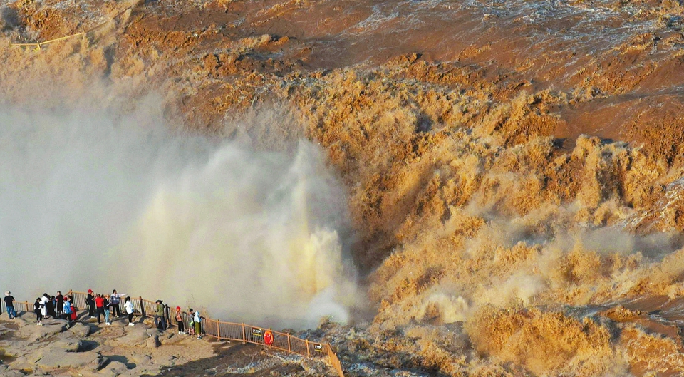 7月10日,游客在吉縣黃河壺口瀑布景區(qū)游覽觀瀑。近日,受上游降雨增多和萬家寨水庫調(diào)節(jié)放水影響,黃河干流迎來汛期,滾滾波濤奔騰而下,氣勢極為壯觀,吸引了眾多游客前來參觀。