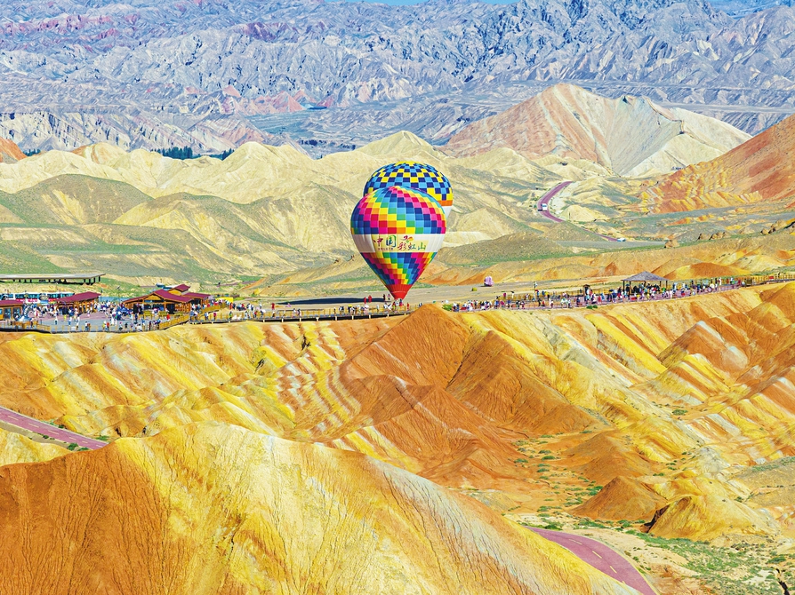 這是8月7日在張掖七彩丹霞景區(qū)拍攝的丹霞景觀(無人機照片)。位于甘肅省張掖市境內的張掖七彩丹霞景區(qū)屬張掖國家地質公園,是罕見的丹霞地貌與彩色丘陵景觀復合區(qū)。進入8月以來,七彩丹霞景區(qū)日均游客數量突破3.5萬人次。