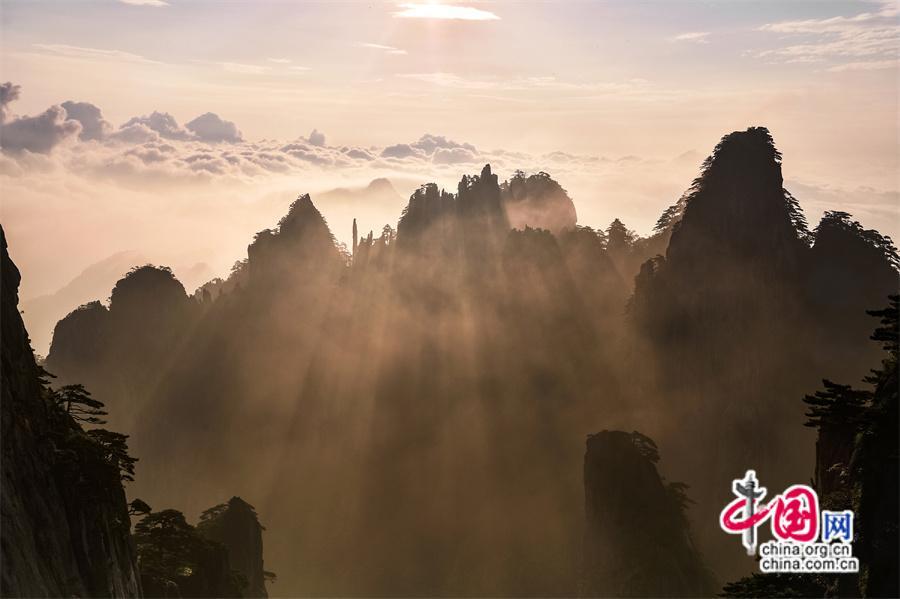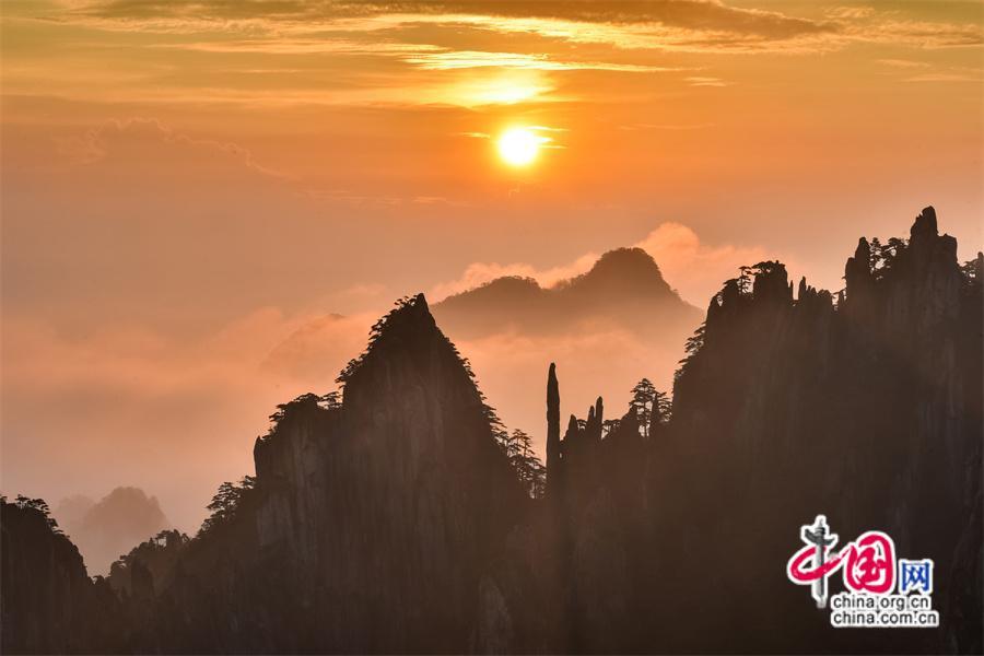【點(diǎn)睛】“立秋”日安徽黃山驚現(xiàn)紅日、朝霞、云海同框,日出時(shí)分一輪紅日在滿天紅霞中冉冉升起,云海在陽光里變幻著色彩,人們仿佛置身于一幅引人入勝的風(fēng)景畫中。