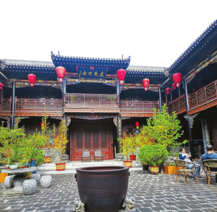 這是一處坐落于平遙古城景區(qū)西南門頭街的五星級(jí)民俗客棧,步行200米可達(dá)古城墻、明清一條街、縣衙博物館等景點(diǎn)?!霸鹤?,既是一個(gè)居住空間,也是一個(gè)安放心靈的空間。從設(shè)計(jì)開始我們便努力滿足人們對(duì)晉商文化、大院文化、建筑審美等方面的精神需求。”10月17日,客棧負(fù)責(zé)人安琪介紹說(shuō)。