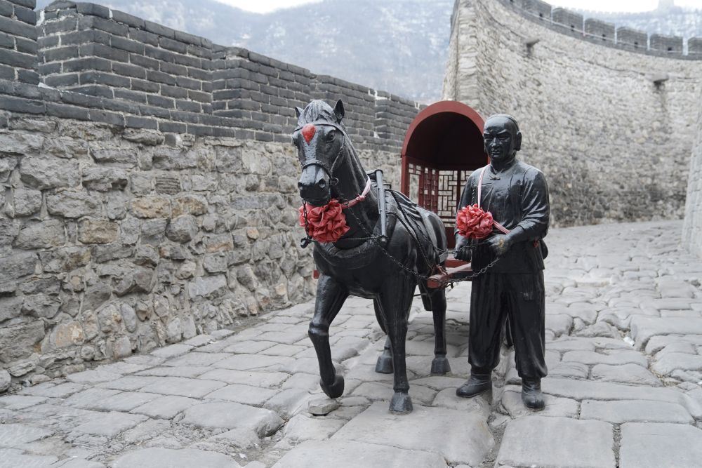 固關(guān)長城的甕城內(nèi),大約30厘米深的車轍印從城門洞下穿過,深深地鑲嵌在石板路里。游客們徜徉于井陘古道,不禁紛紛感嘆時(shí)光流逝。