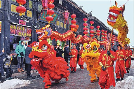 喬家大院開(kāi)展非遺、民俗、美食、搭彩樓、看社火、趕集市、購(gòu)年貨、搶紅包等多種形式的傳統(tǒng)年俗活動(dòng),讓游客相聚喬院,感受新年的溫暖和快樂(lè)。
