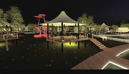 游玩至傍晚需要一處別樣的休憩之所,在鸛雀樓景區(qū)有一家很值得住一晚休息放松的民宿,那就是鸛棲苑民宿酒店。這個(gè)酒店以鸛雀樓的花海為依托,展開建筑的單體布局,又通過陣列組合形成一個(gè)大花瓣,客房之間用棧道連接,白天賞花海,夜晚觀花燈,好不自在。酒店還有一個(gè)可以露營(yíng)的營(yíng)地,緊鄰黃河還可以燒烤。在接待中心頂層還有一個(gè)觀光平臺(tái),有卡座可以休憩和賞景。夜晚的彩燈亮起,繁花縈繞,讓人仿佛置身仙境。