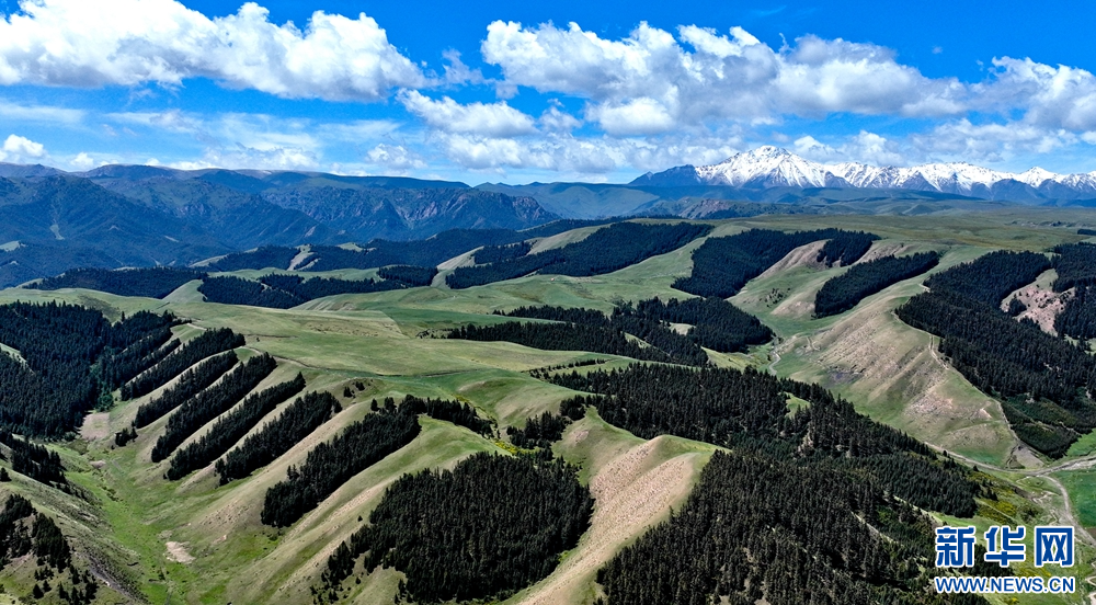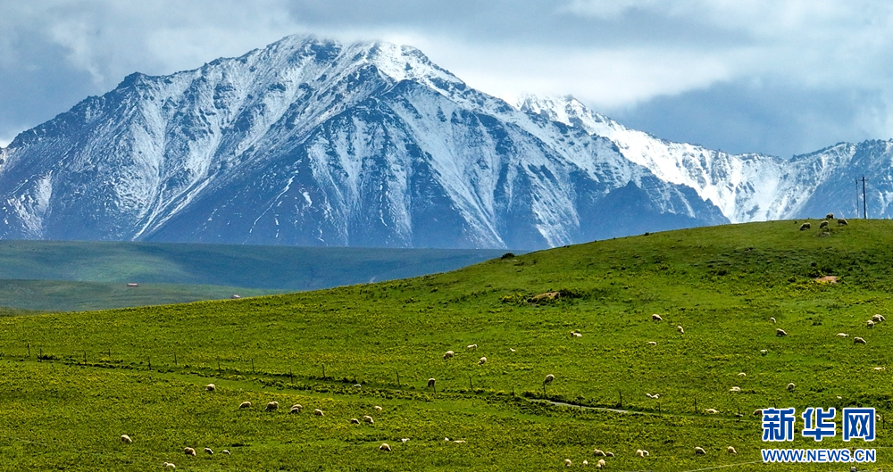 盛夏時節(jié),祁連山國家公園甘肅省張掖市肅南裕固族自治縣康樂鎮(zhèn)段,湛藍的天空飄著朵朵白云,映襯著巍峨的雪峰和碧綠的大地,牛羊在青草中浮動,像一把珍珠撒在了綠色的絨毛毯上,勾勒出一幅天然秀麗的生態(tài)畫卷。新華網發(fā)(王將 攝)
